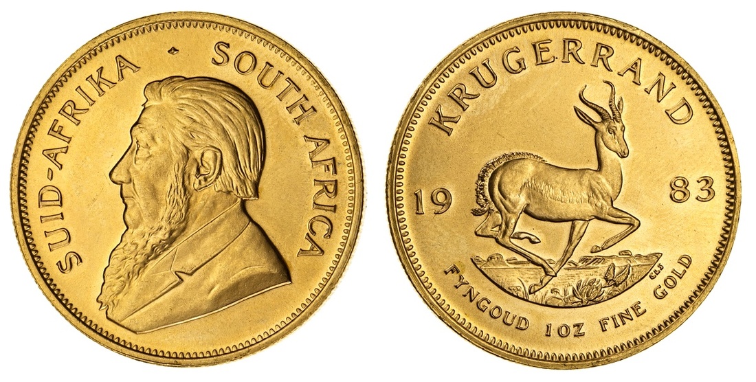 South Africa. Krugerrand, 1983. Oom Paul bust left, rev. Springbok right. KM 73. Brilliant Uncirculated.