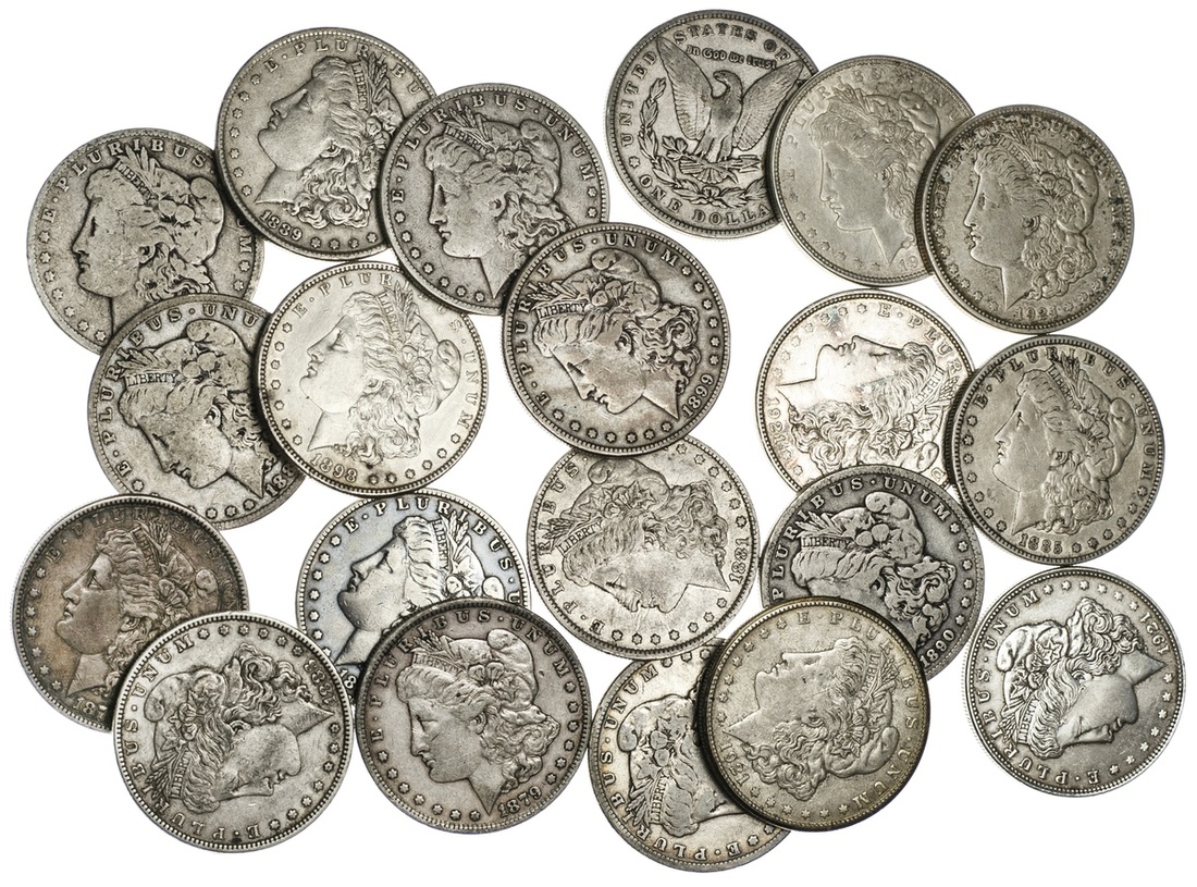 Lot of Circulated Morgan Dollars. Common dates, 1879-1921. A few once cleaned. (20)