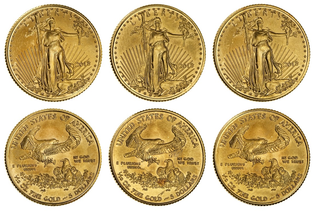 Trio of 2015 $5 Gold Eagles-1/10 Oz. Very Choice-Gem Brilliant Uncirculated. (3)