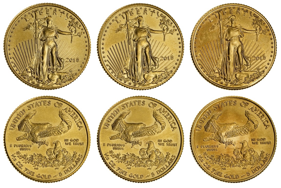 Trio of 2015 $5 Gold Eagles-1/10 Oz. Very Choice-Gem Brilliant Uncirculated. (3)