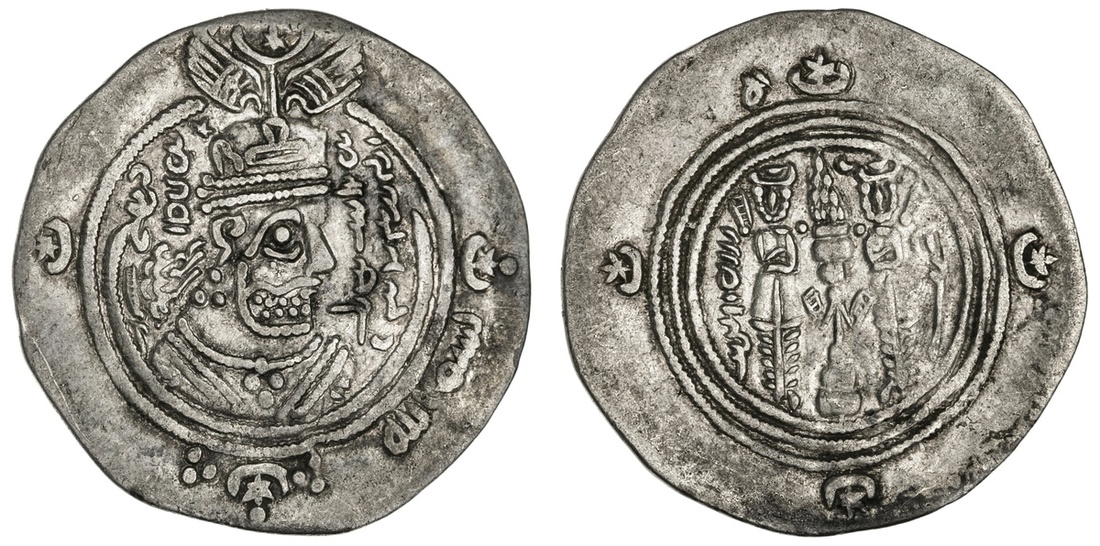 Arab-Sasanian. `Abd Allah b. al-Zubayr, rival Caliph (AH 60-73 / 680-692 AD). AR Drachm. DA-P - Darabjird subordinate mint of Fasa, YE 58 = AH 70 (689/90 AD). 4.0 gms. A.16. Some dark areas and slight porosity. Extremely Fine.