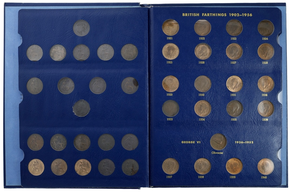 Great Britain. Edward VII-Elizabeth II. Farthing Set, 1902-1956 Complete. With a few extra. Generally VF-Unc. In a Whitman album. (59)