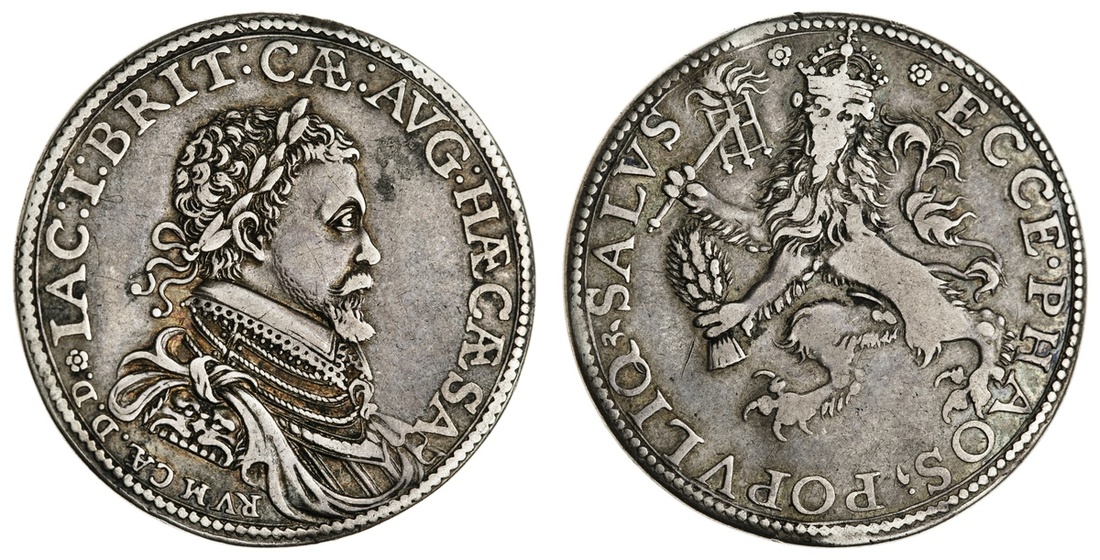 England. James I (1603-1625). On the Coronation of James I, 1603. Struck Medal. Silver, 29mm. 5.83 gms. Unsigned (by C. Anthony?). Laureate, armored and draped bust right; *IAC: I: BRIT: CAE: AVG: HAE CAESA-RVM CAE.D.D., rev. Crowned lion rampant left, holding beacon and sheaf of wheat. Eimer 80; MI i 191/11. Rare. Old tone over a few small hairlines. Good Very Fine.