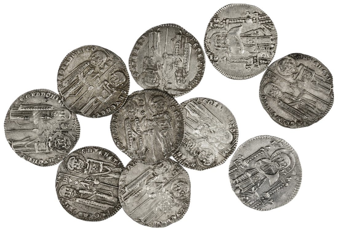 Italian States. Venice. Pietro Gradenigo (1289-1311). Group of Silver Grosso (10). San Marco and the Doge standing holding banner; S.M.VENETI. PE GRADONICO rev. Christ enthroned facing. Very Fine. (10)