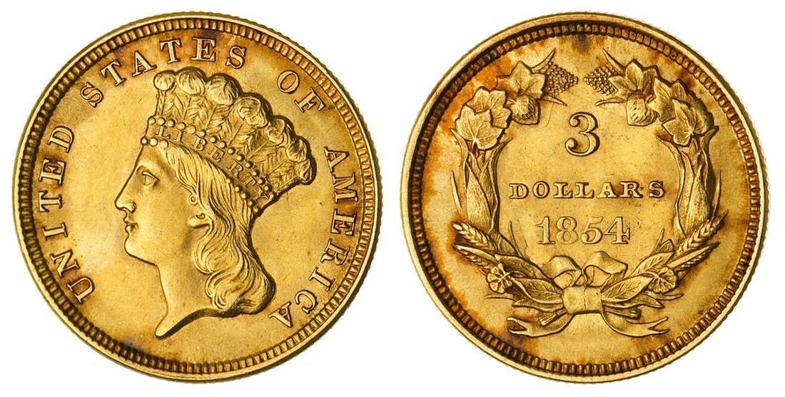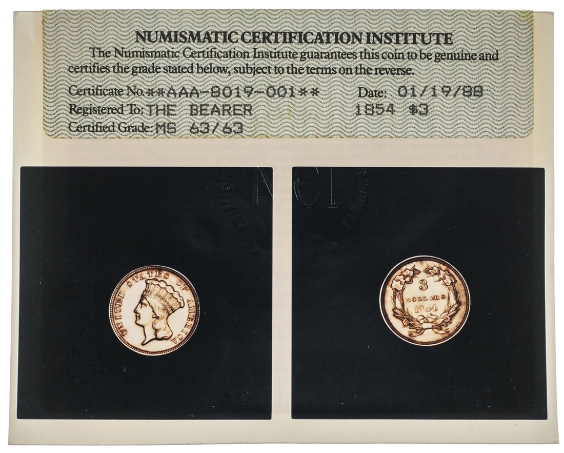1854 $3. NCI MS 63/63. Photograde (1988) and in viewing wallet.