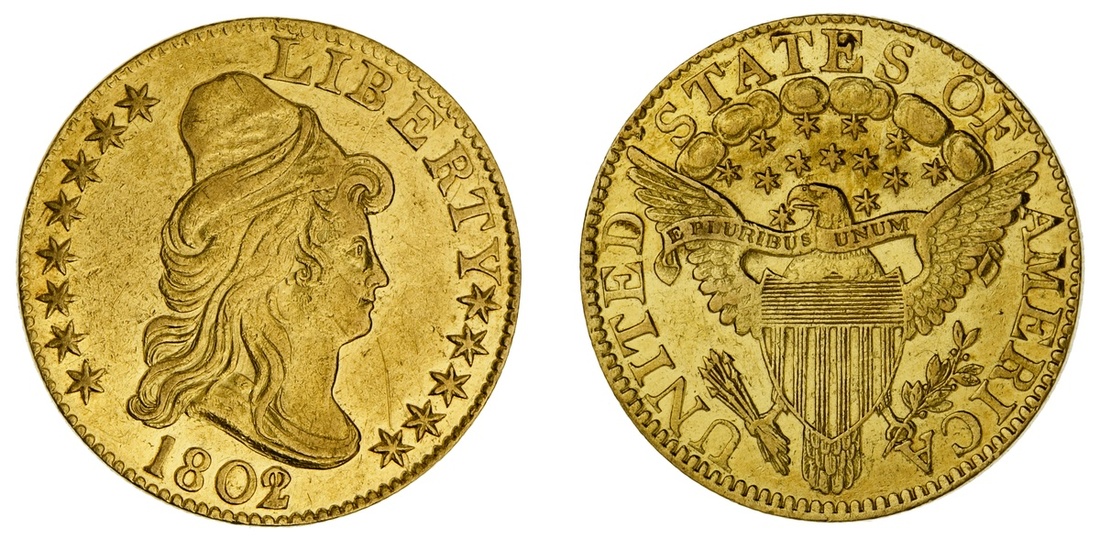 1802/1 Draped Bust $5. NGC AU 55. Good lustre.