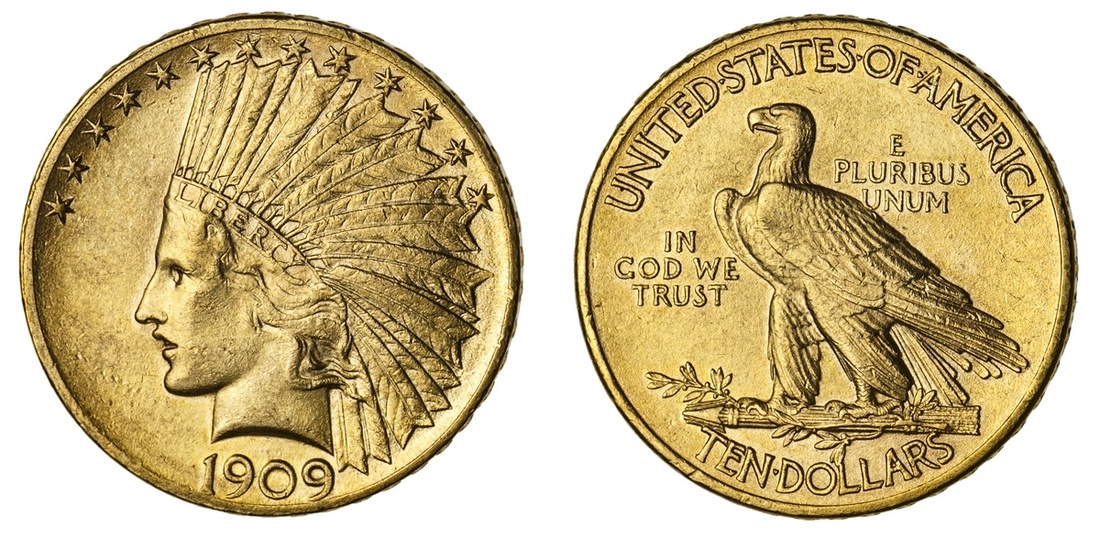 1909 Indian $10. About Uncirculated.