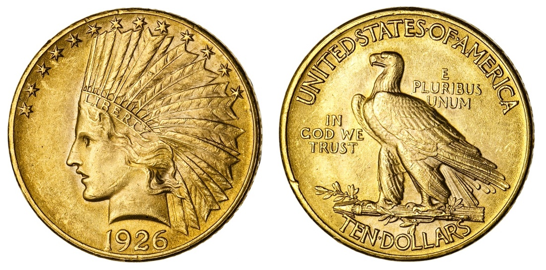 1926 Indian $10. Uncirculated. Reverse rim nick.