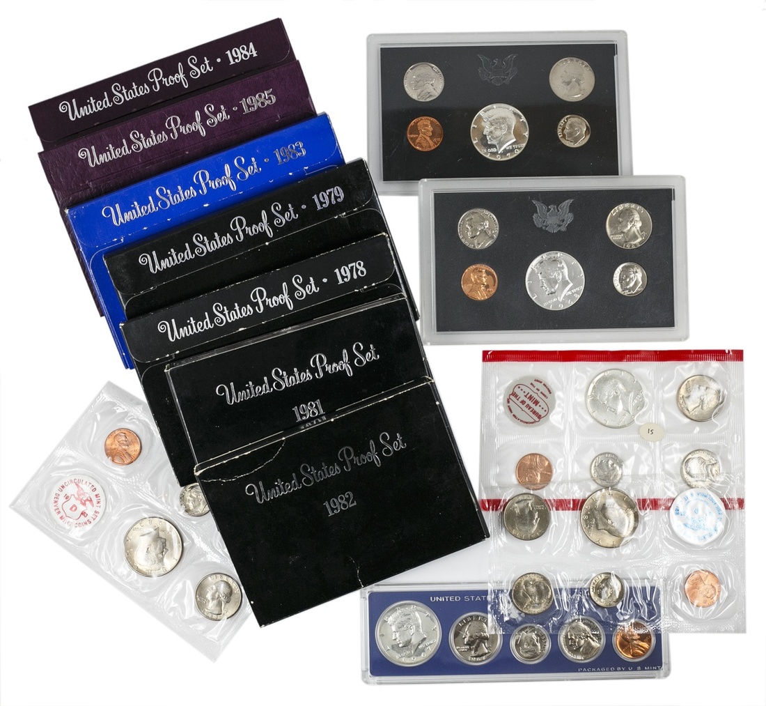Proof and Mint Set Lot. Proof Sets: 1968-1973, 1975, 1978, 1979, 1981-1985; Mint Sets: 1969-1971, 1973-1981, 1983, 1986; Special Mint sets, 1965-1967.