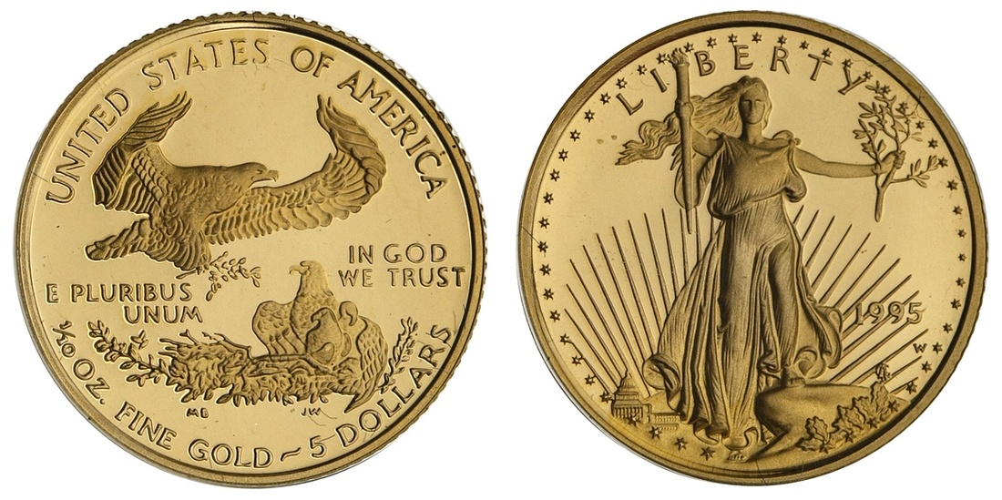 Proof 1995 $5 Gold Eagle-1/10 Oz. Choice Brilliant Proof. In original plush case.