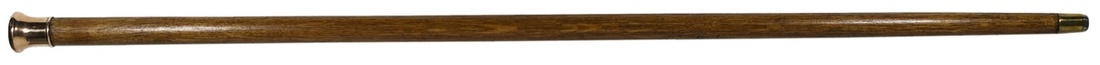 32 1/3" tapering straight grained hickory stick; domed rose gold handle and sheath, 1 ¾", with replacement brass-mounted steel ferrule. The handle not hallmarked, but tested. Handle ornately engraved: "Presented to Wm Henry Smith by Officers U.S. NAVY Portsmouth 1888 THE KEARSARGE"