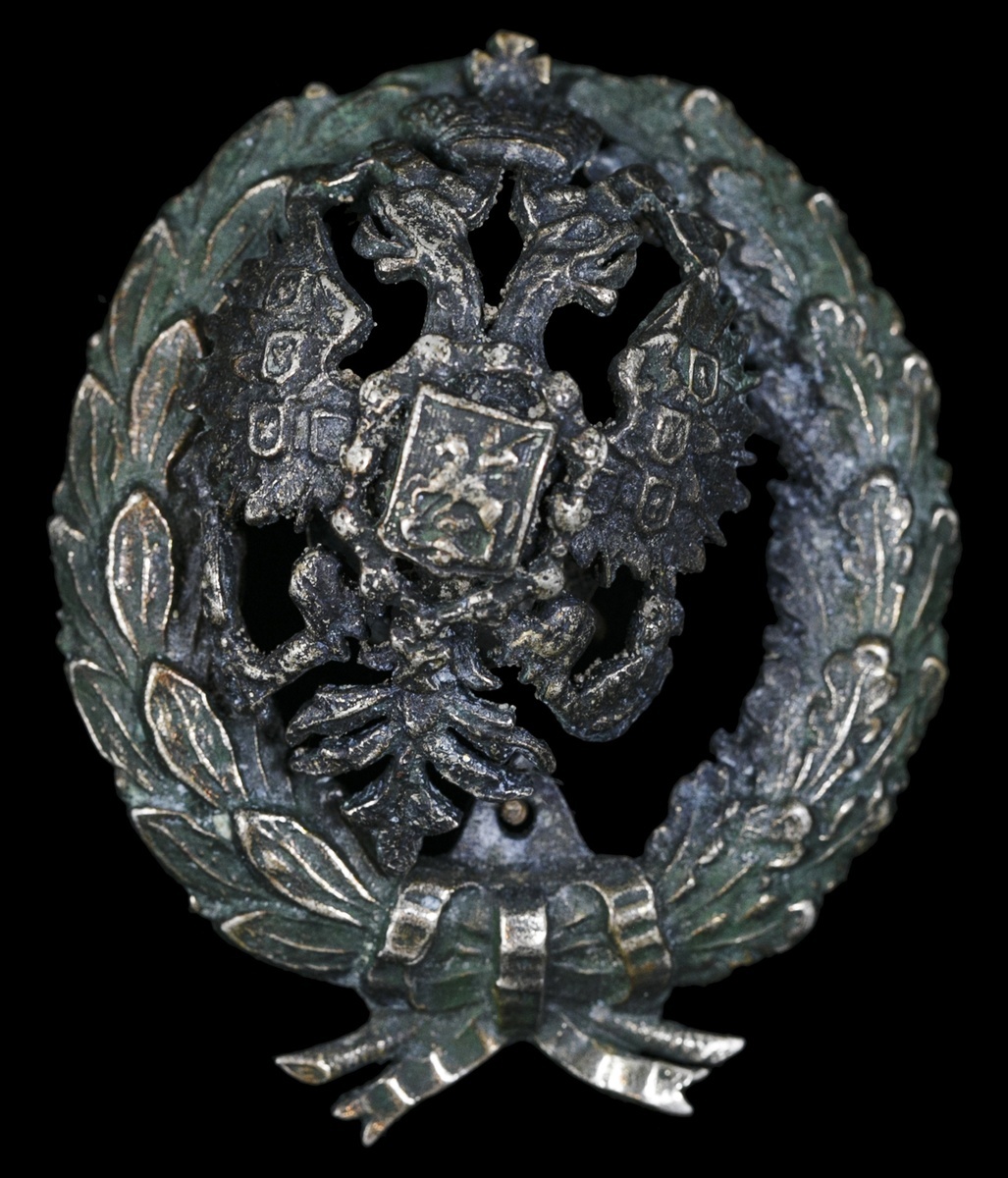 Russia. Imperial. Military Academy Breast Badge. Silvered Bronze. Two-piece construction. Screwback. Very Fine.