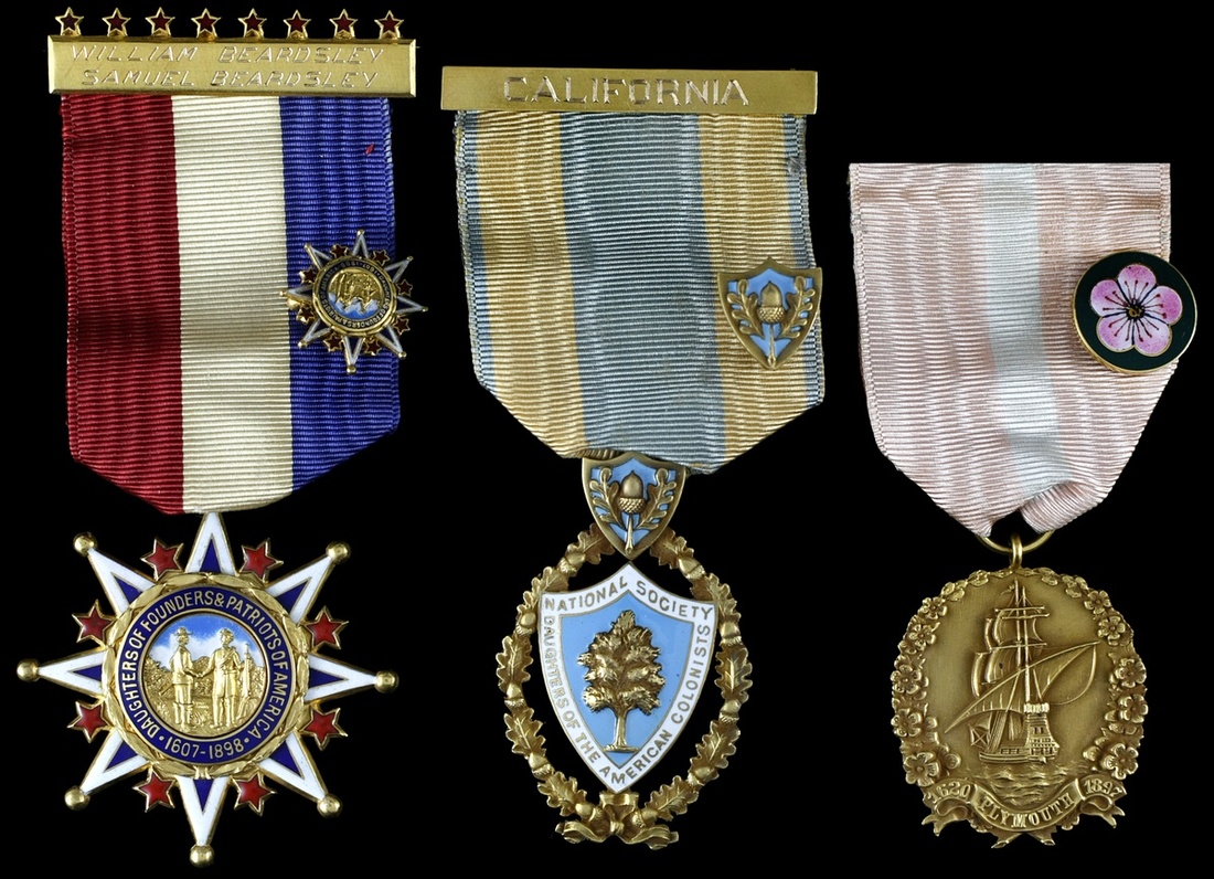 A Trio of Early American Ancestral Patriotic Society Badges to Frances Beardsley Collier: