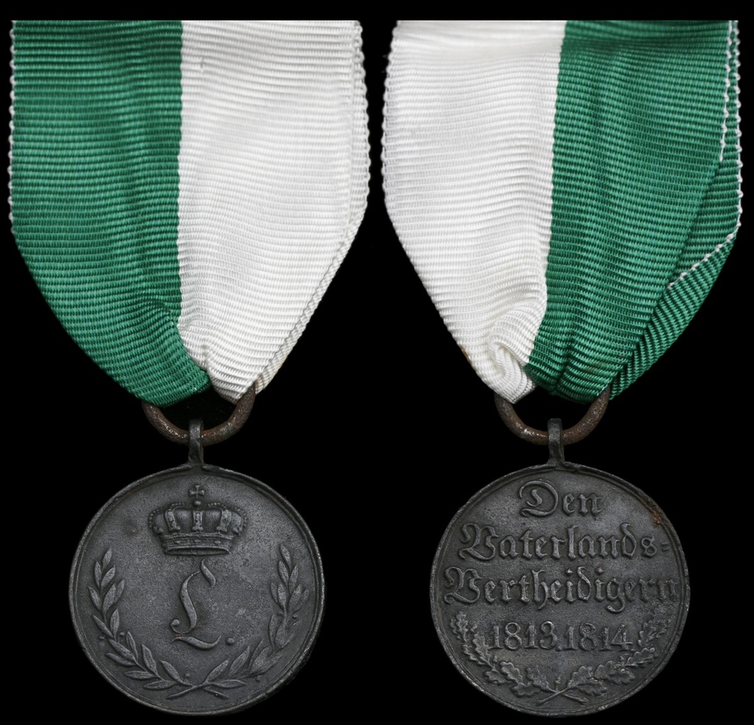German States. Anhalt-Köthen. War Medal, 1813-1814. Iron, 30.4mm. Crowned cipher L. 60 medals awarded. On replacement ribbon. Good Very Fine.