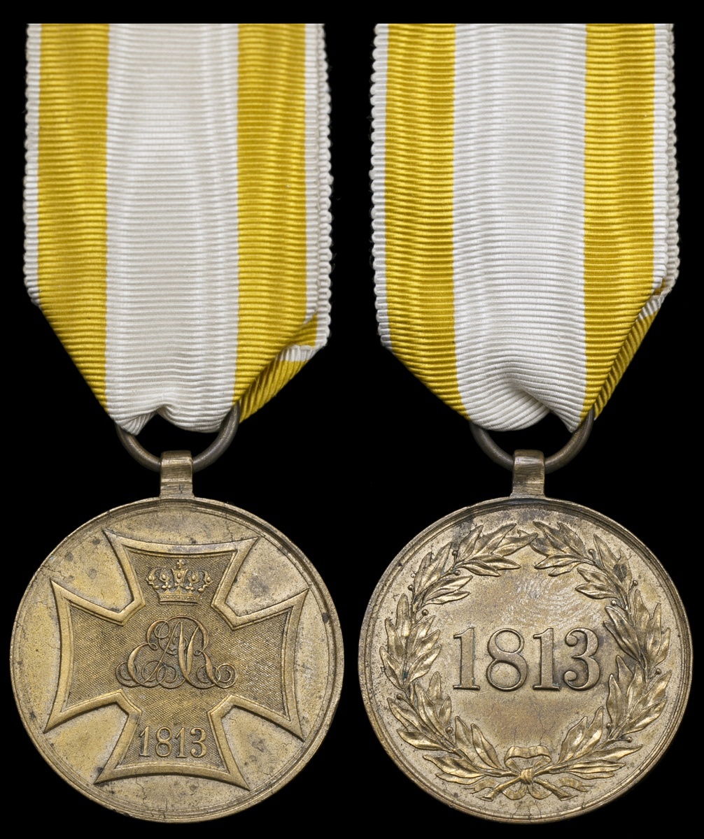 German States. Hannover. Volunteer Service Medal, 1813. Bronze, 34.4mm. On ribbon. Scarce. Extremely Fine.