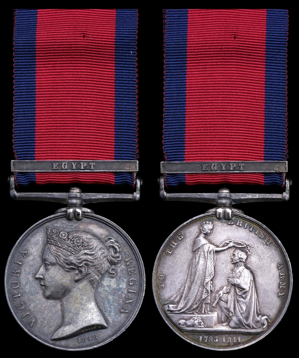 Great Britain. Military General Service Medal, 1793-1814. One clasp: "Egypt" (E.DAVENPORT, CORPL, 22ND LT DRAGNS). On ribbon. Toned over some old hairlines. Very Fine.