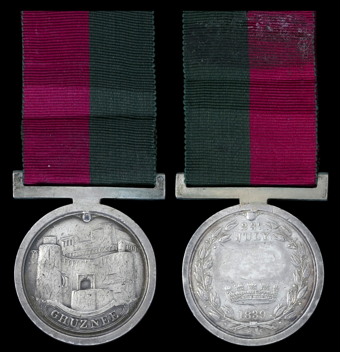 Great Britain. Ghuznee Medal, 1839. Unnamed as issued. Later wide straight bar. On ribbon. Reverse hairlines. Very Fine.