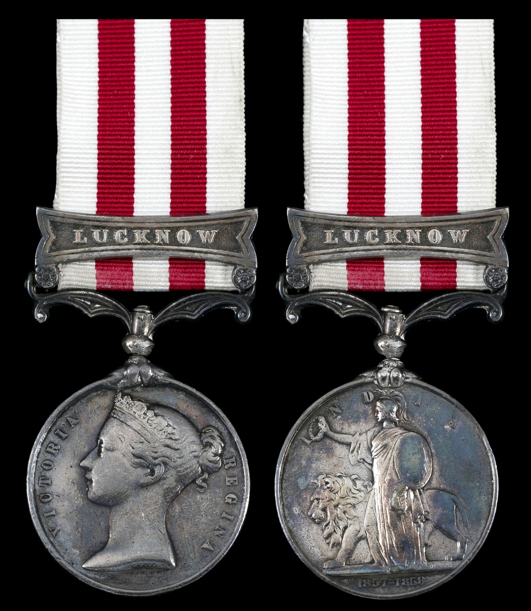 Great Britain. Indian Mutiny Medal, 1857-1859. One clasp: "Lucknow". Unnamed. On ribbon. Toned over contact marks. Fine.