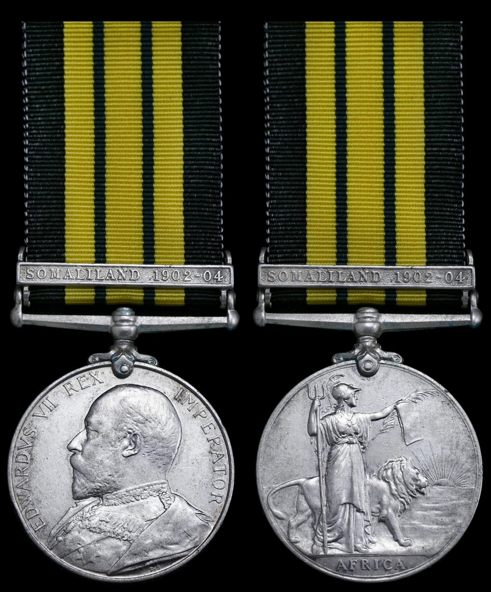 Great Britain. Africa General Service Medal, 1902-1956. Edward VII. One clasp: "Somaliland 1902-04" (3792 SEPOY JAWALA SINGH. XXI/ PUNJABIS). Medal roll confirmed (copy of which included). Impressed. On ribbon. Some contact marks. About EF.