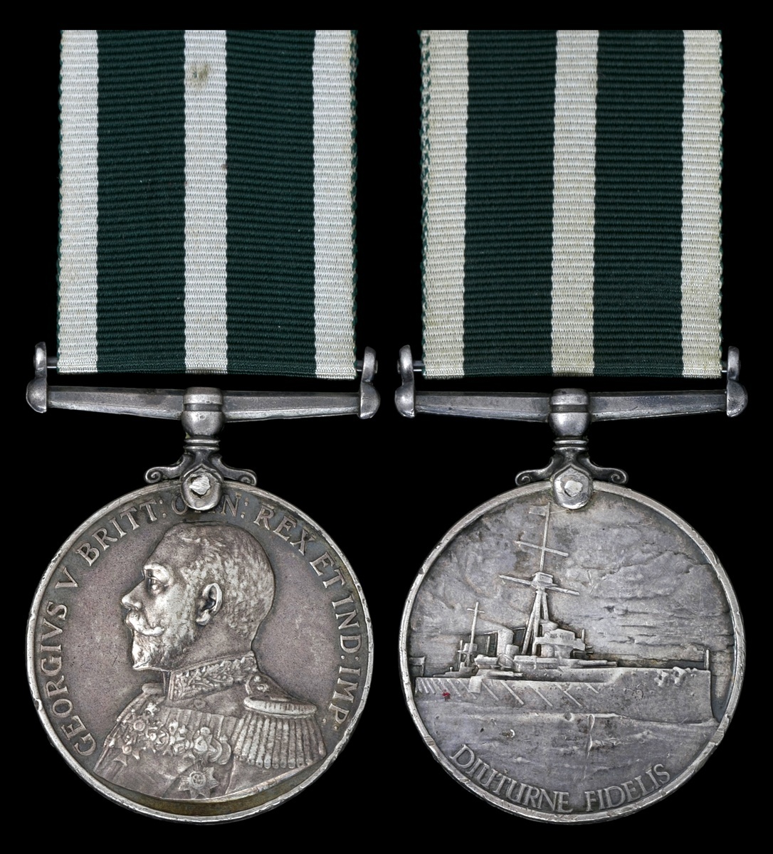 Great Britain Royal Navy Reserves Long Service and Good Conduct Medal. George V. Bareheaded bust in admiral's uniform. C.3526 H.R. JONES, ACT. P.O. R.N.R. On ribbon. A few edge tics. Extremely Fine.