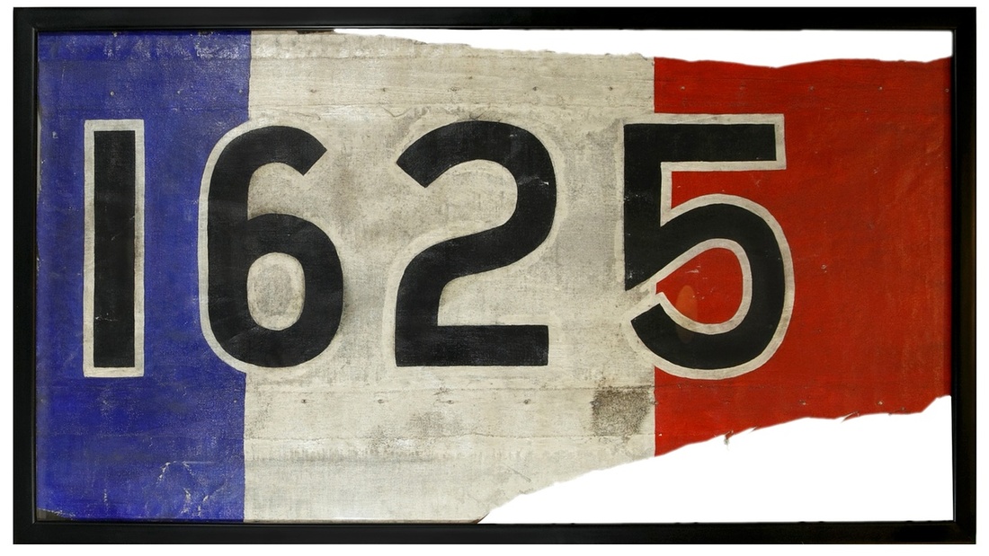 Great Britain. World War I. Tail Number Insignia from a Vickers F.B.5 "Gunbus", ca. 1915. Tail canvas, 38 x 21", cut from the same aircraft as the insignia offered in the lot above. Framed and visible from both sides.