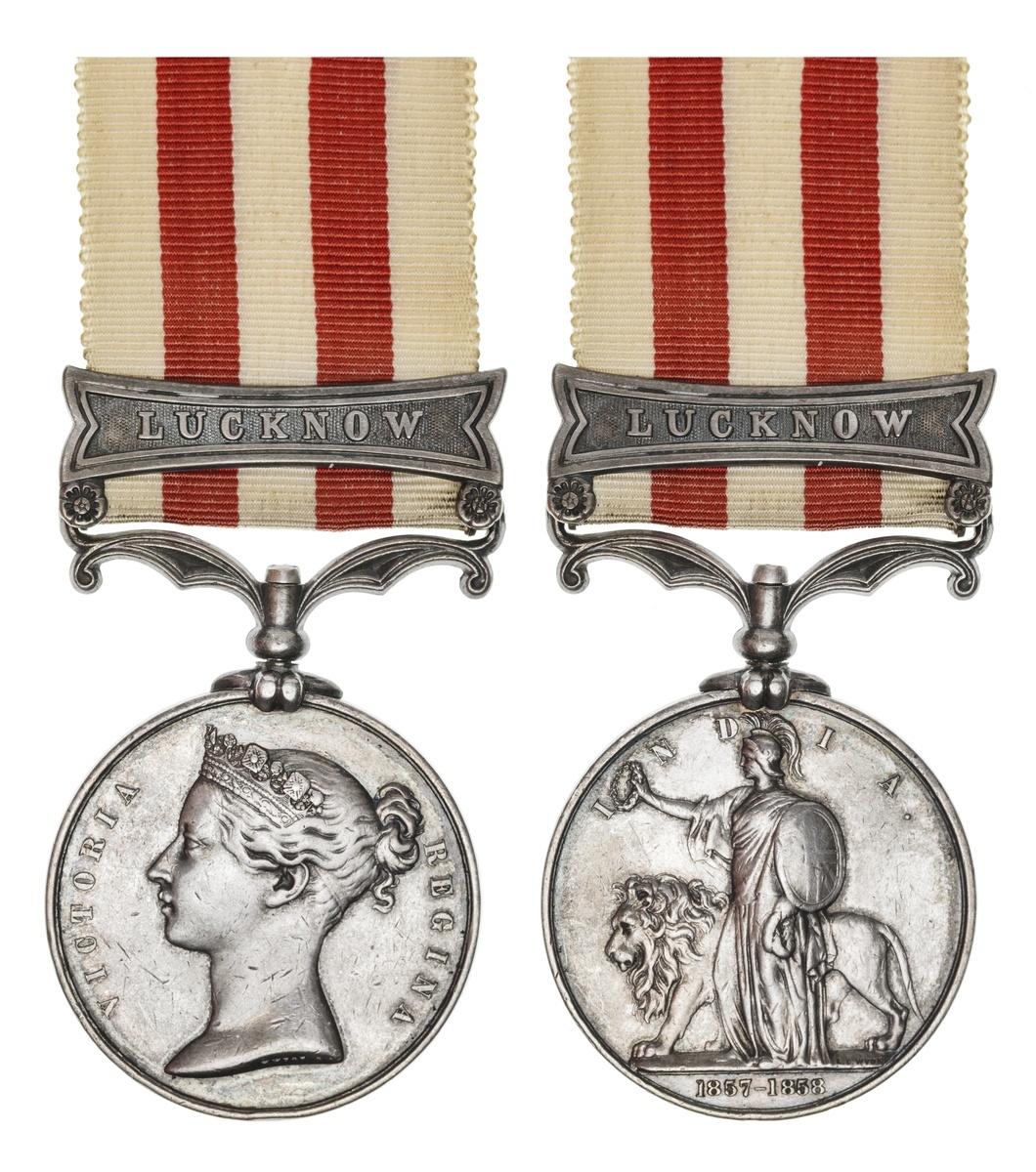 Great Britain. Indian Mutiny Medal, 1857-1859. One clasp: "Lucknow" (ALFD PAYNE, 1ST BN 23RD R.W. FUSRS). Impressed. On original ribbon. Toned over some contact marks. Very Fine