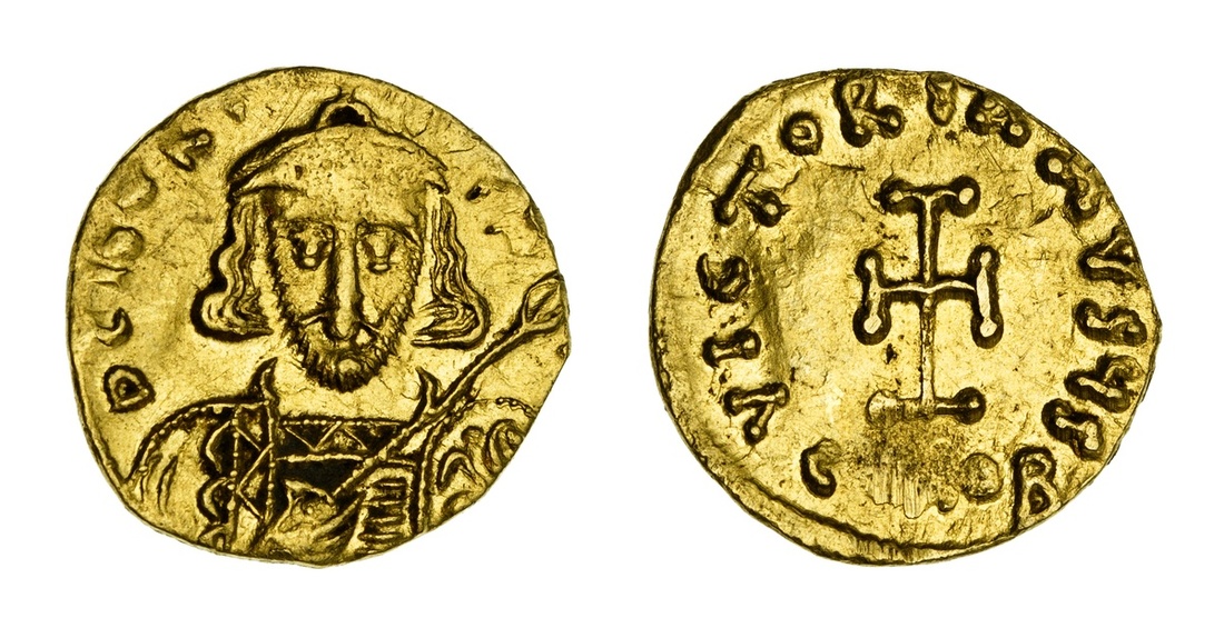Byzantine Empire. Tiberius III - Apsimar (AD 698-705). AV Tremissis. Constantinople. 1.32 gms. Crowned and cuirassed bust facing holding spear over shoulder and shield, rev. Cross potent, Co(N)oB. DOC 4, MIB 8. Scrape on mint signature. Very Fine.