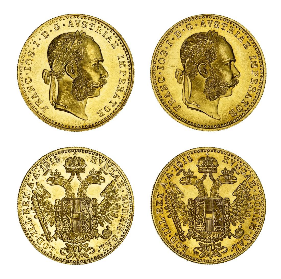 Austria. Franz Josef (1848-1916). Pair of Restrike 1915 Ducats. Laureate head right, rev. Imperial eagle. KM 2267. Brilliant Uncirculated. (2)