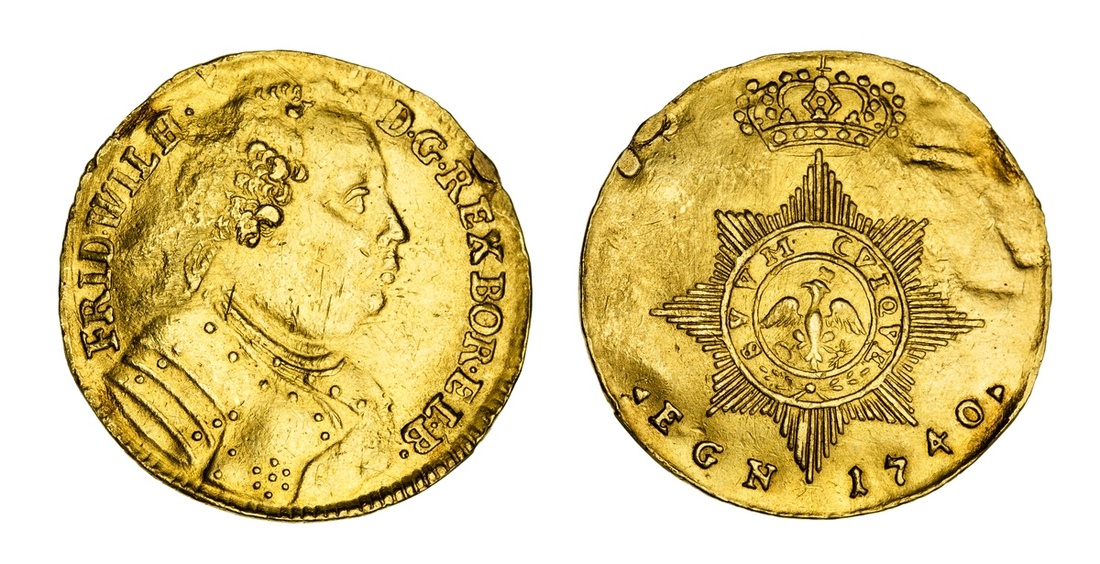 German States. Prussia. Friedrich Wilhelm I (1713-1740). Ducat, 1740 EGN. Berlin. Large armored bust right, rev. Crowned Star of the Order of the Black Eagle. Fr.2338, KM 214. Ex mount. About Extremely Fine details.