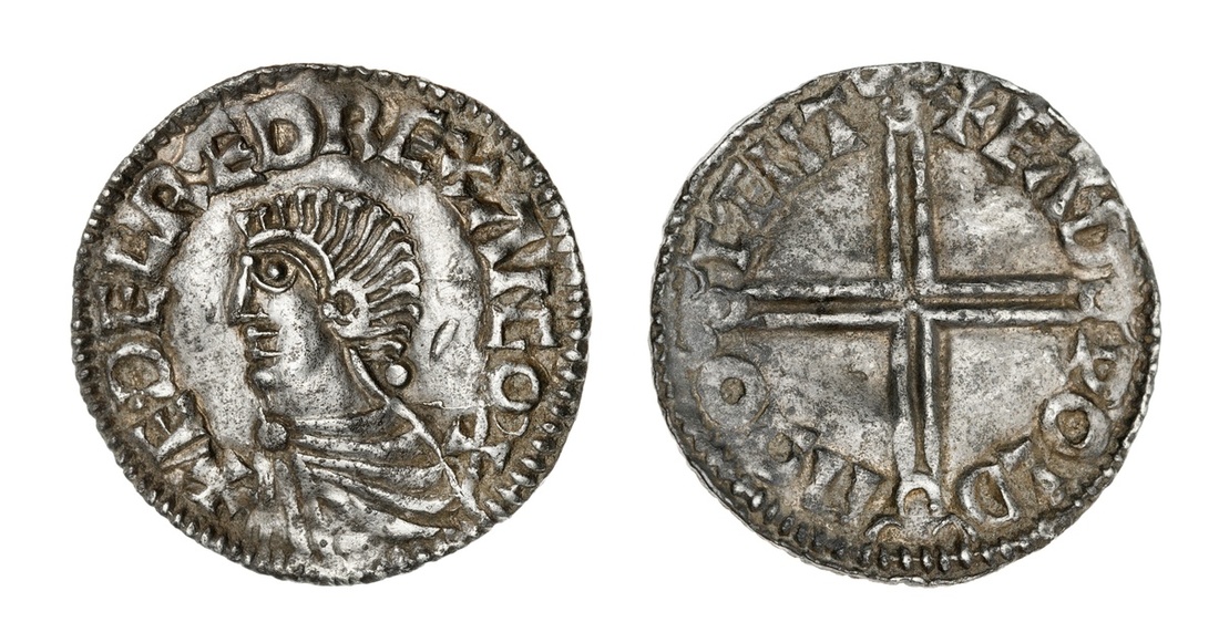 England. Late Anglo-Saxon. Aethelred II (978-1016). Long Cross Penny. Canterbury; moneyer: Eadweald. 1.69 gms. Bare-headed bust left; +EDELRED REX ANGOX, rev. Long cross voided, each limb terminating in three crescents; +EADPOLD MO O CENT. N.774, S.1151. Toned over some minor deposits in peripheries. Near Extremely Fine.
