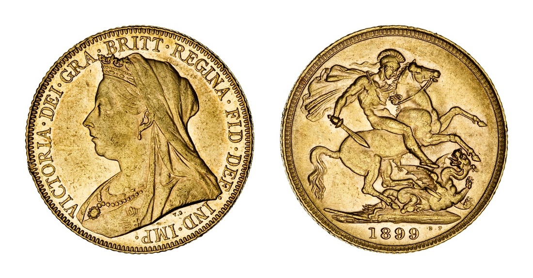 Great Britain. Victoria (1837-1901). Sovereign, 1899. Old, veiled bust left, rev. St. George. S.3874, KM 785. Two nicks on rim. About Uncirculated.