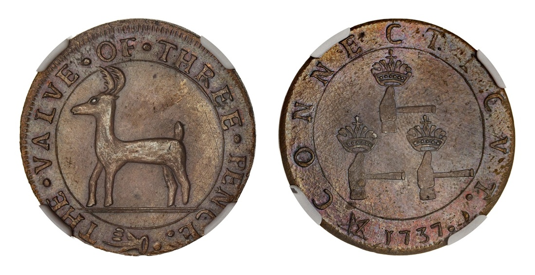 "1737" Higley Copper Facsimile by J.A. Bolen (1864). Musante JAB-10. NGC MS 66 BN. A lovely example of this facsimile by noted numismatist and antiquarian John Adams Bolen. Tied for the finest graded by NGC.