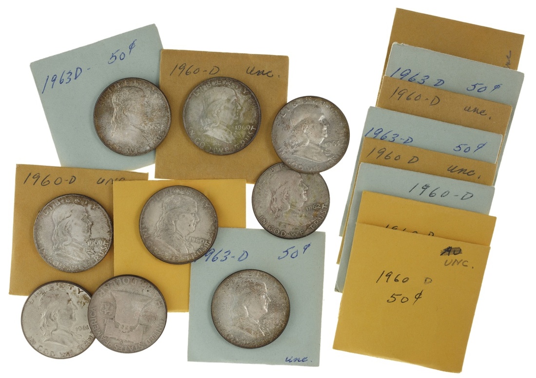 Lot of Franklin Half Dollars (29). 1948-D, 1950-D, 1951, 1952, 1952-D, 1957-D, 1960-D (13), 1961-D, 1962-D (2), 1963-D (7). Generally VF-Uncirculated. (29)