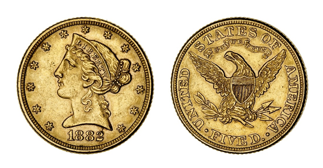 1882 Liberty Head $5. Extremely Fine.