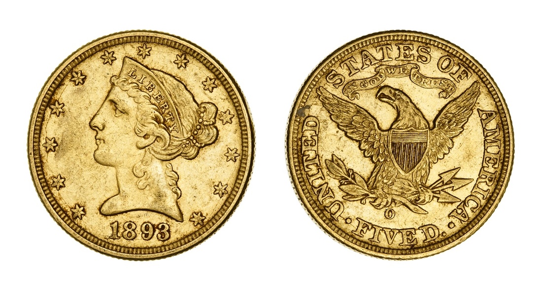 1893-O Liberty Head $5. Extremely Fine.