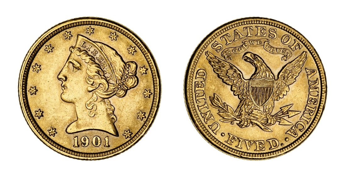 1901 Liberty Head $5. AU-Uncirculated. Once wiped.