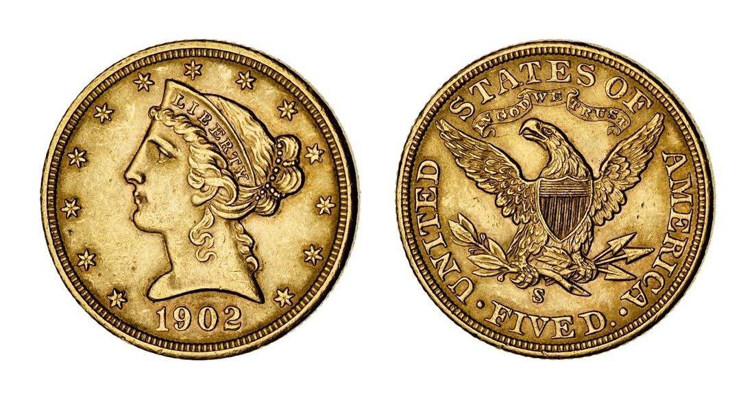 1902-S Liberty Head $5. About Uncirculated. Some light bagmarks.