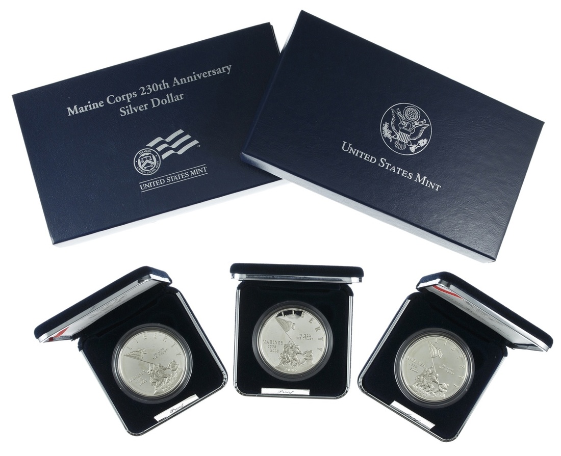 Lot of 14 Proof 2005-P Marine Corps Commemorative Dollars. All with CoA and in case of issue. Choice Brilliant Proof. (15)