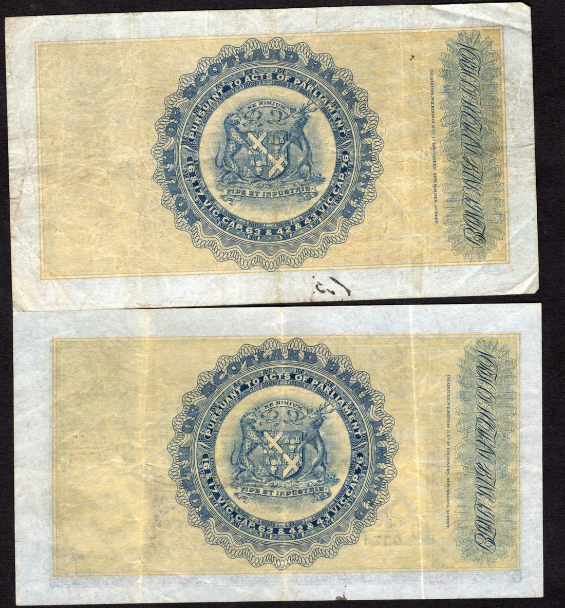 Scotland. North of Scotland Bank Limited. 1 Pound. Aberdeen, 1st March 1924. D.27-1; P-S638. No. D 0547/0374. Signature of Michael Stuart and initial of accountant "D" (?) Marischal College top center, three coats of arms at left; Arms on back. Good Very Fine.