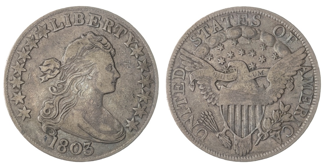 1803 Draped Bust Half Dollar. Large "3". About VF/Fine. Light slate gray over a few obverse hairline scratches, tiny nick on "o" in date.