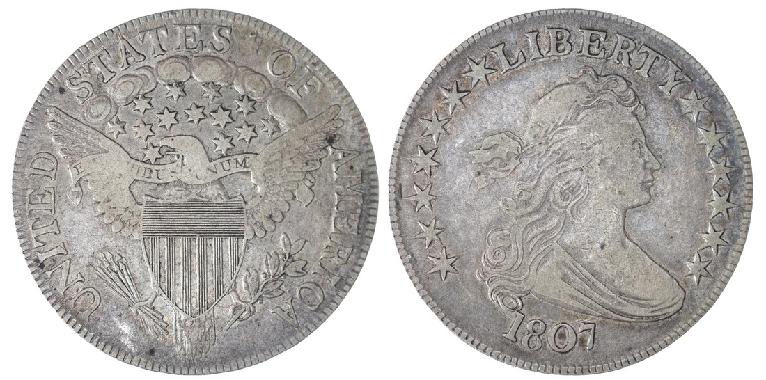 1807 Draped Bust Half Dollar. Fine+. Light gray with satiny highlights.