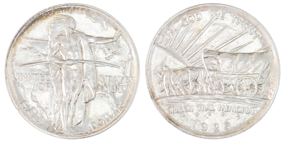 1926-S Oregon Trail Commemorative Half Dollar. Brilliant Uncirculated. Lightly toned.