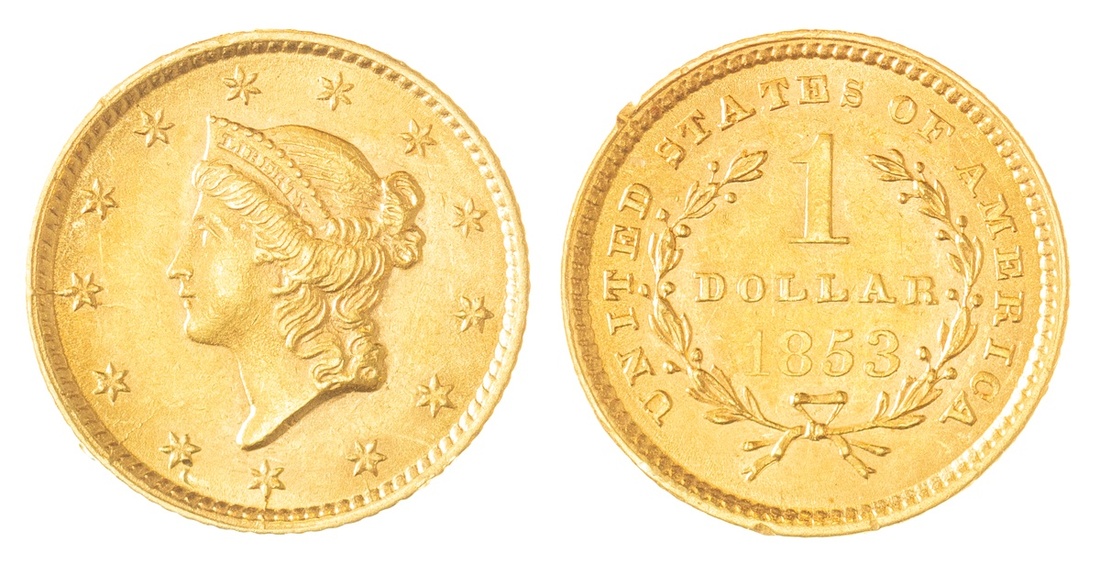 1853 Gold Dollar. Uncirculated. Decent lustre.