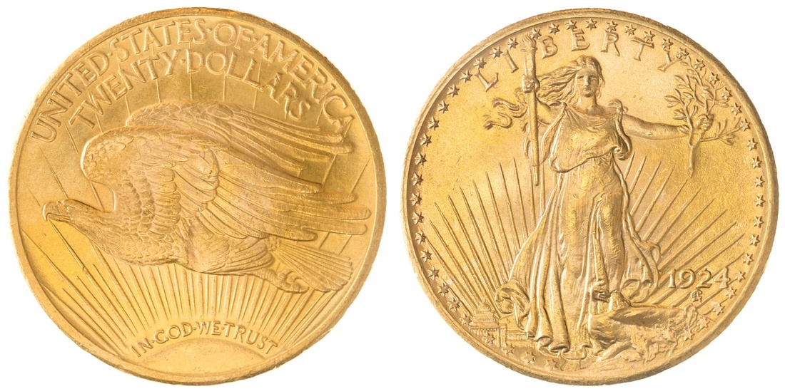 1924 St. Gaudens $20. Brilliant Uncirculated.