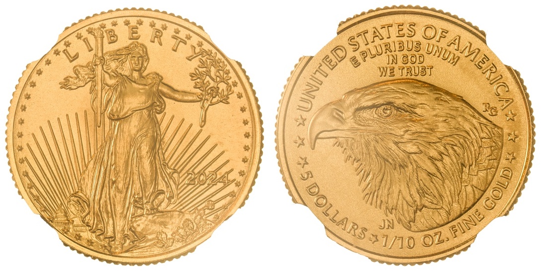 2024 $5 Gold Eagle-1/10 Ounce. NGC MS 70 First Releases.