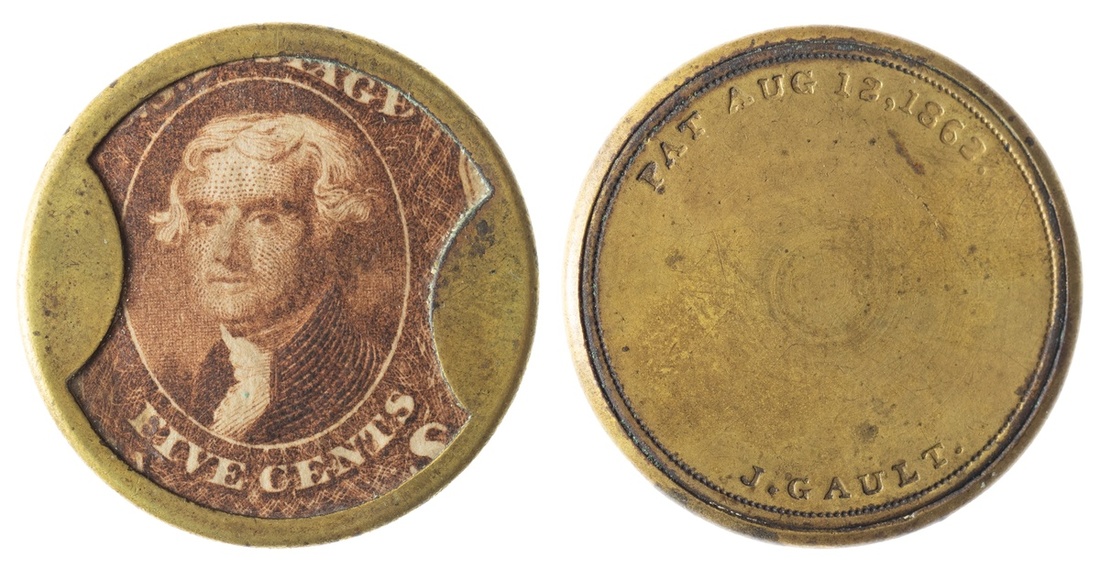 1862 5 Cents Encased Postage. J. Gault. Pat Aug 12, 1862. Ep-96. Very Fine.