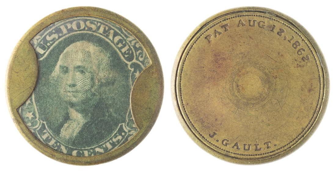 1862 10 Cents Encased Postage. J. Gault. Pat Aug 12, 1862. HB-133, EP-1116, S-97. Very Fine.