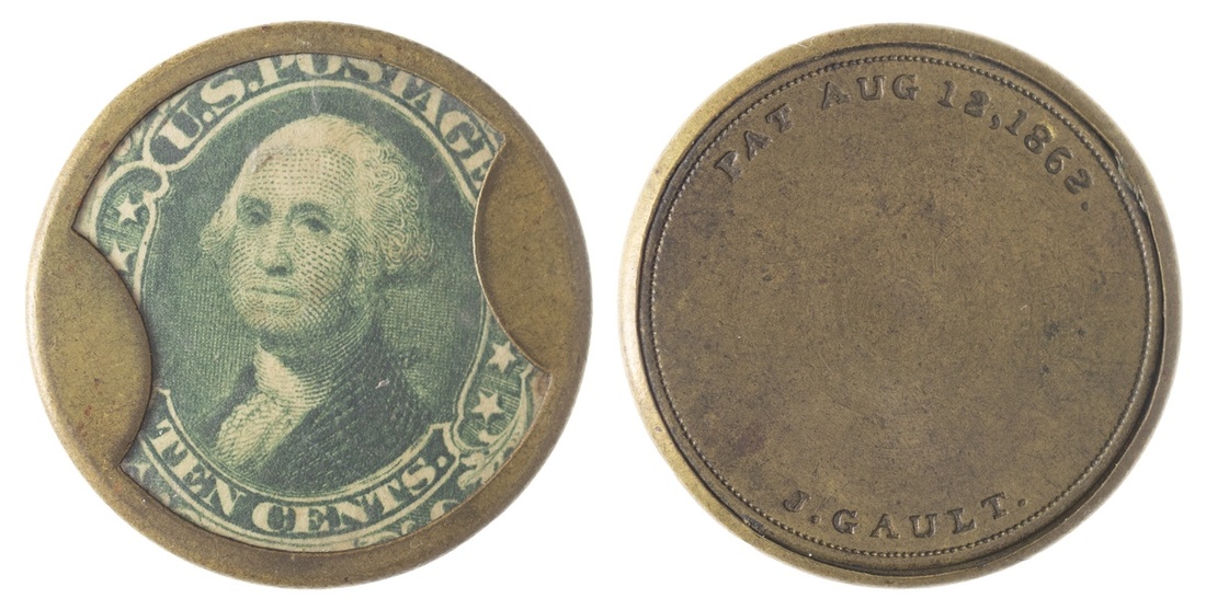 1862 10 Cents Encased Postage. J. Gault. Pat Aug 12, 1862. HB-133, EP-1116, S-97. Good Very Fine.