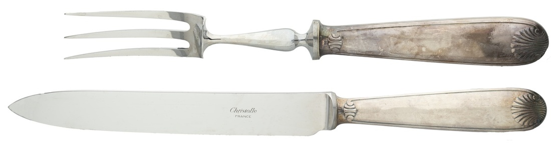 Christofle "Cluny" silvered Carving Set. Mid-20th Century. In original boxes.