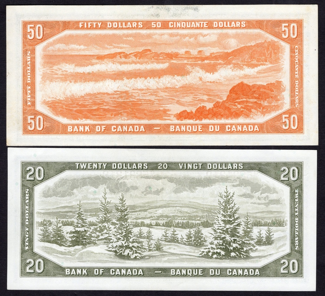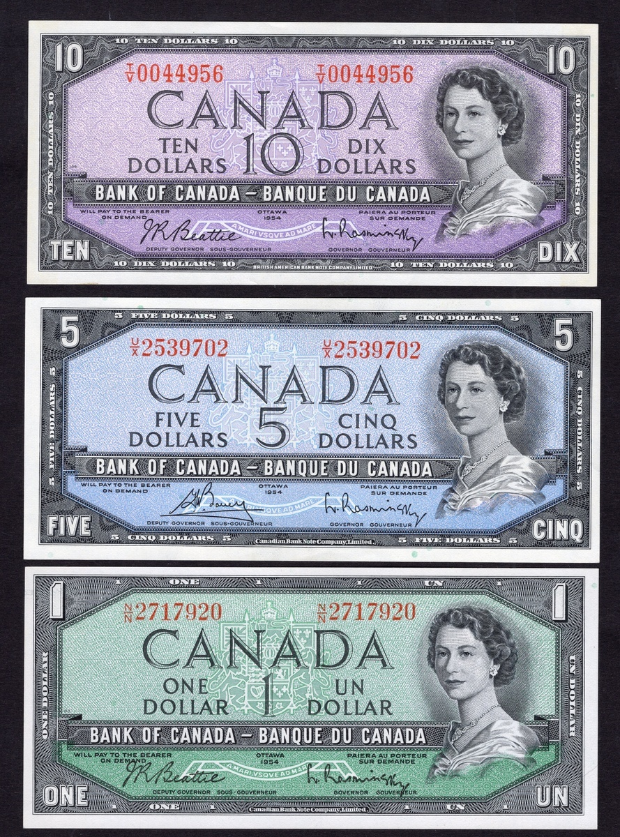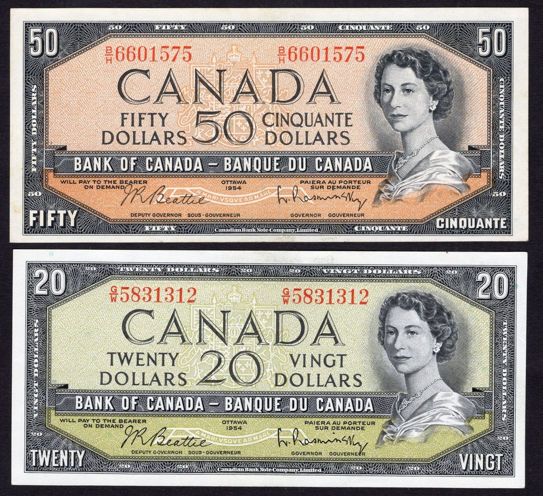 Canada. Bank of Canada-Banque du Canada. 1969-1971 Issue Lot. 10 Dollars. P-88b, c (2), d (2), e; 20 Dollars. P-89a, 93b. Queen Elizabeth II at right. One EF, the others AU-Uncirculated. [9]